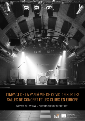 Ce document publié par Live DMA (réseau européen de salles de concert, clubs et festivals) et traduit en français par la FEDELIMA donne un aperçu de l’impact de la pandémie sur ces lieux culturels en 2020 et 2021 en comparaison avec l’année 2019. Il présente des chiffres clés sur le nombre d’événements annulés, la baisse de fréquentation et les pertes de revenus générées par la crise. Le rapport explique également comment les salles de concert et clubs sont affectés en fonction de leur modèle économique.